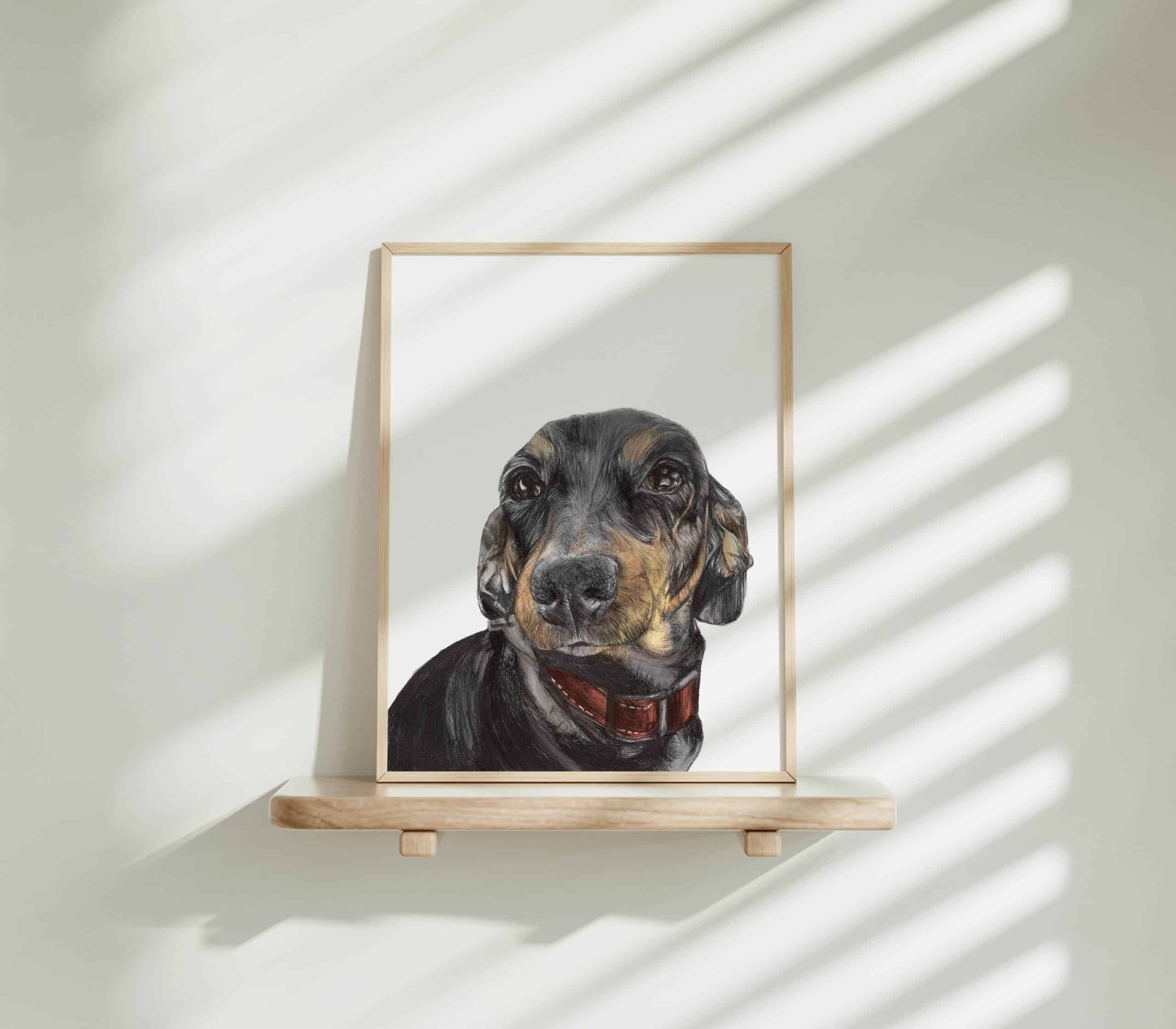 Bring a touch of warmth and personality to your home with these stunning dog art prints by Olivia Bell. Each piece is a digital reproduction of a bespoke biro drawing she created from commissions of real dogs that she had the pleasure of working with. The original biro artwork captures the unique essence of each dog, and the prints are then digitally coloured, adding a vivid and lifelike finish. These prints are more than just art – they’re a celebration of the bond between owner and pet.