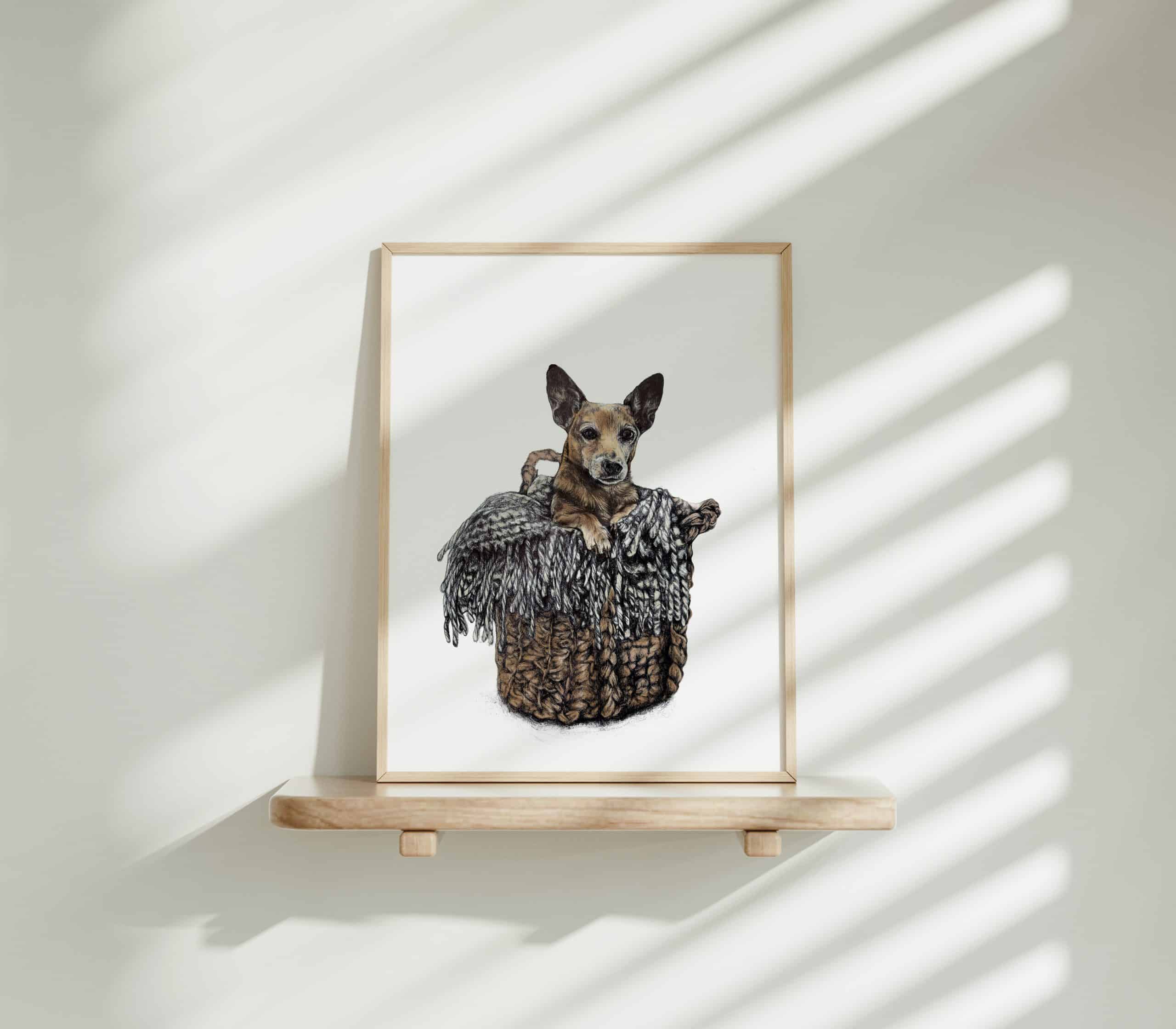 Bring a touch of warmth and personality to your home with these stunning dog art prints by Olivia Bell. Each piece is a digital reproduction of a bespoke biro drawing she created from commissions of real dogs that she had the pleasure of working with. The original biro artwork captures the unique essence of each dog, and the prints are then digitally coloured, adding a vivid and lifelike finish. These prints are more than just art – they’re a celebration of the bond between owner and pet.